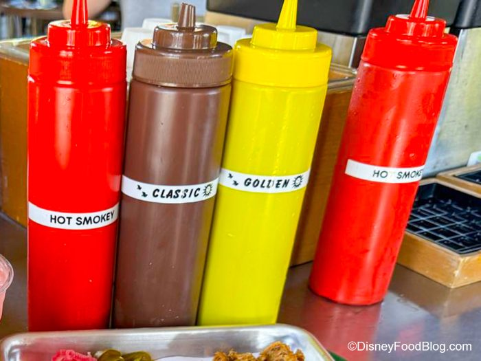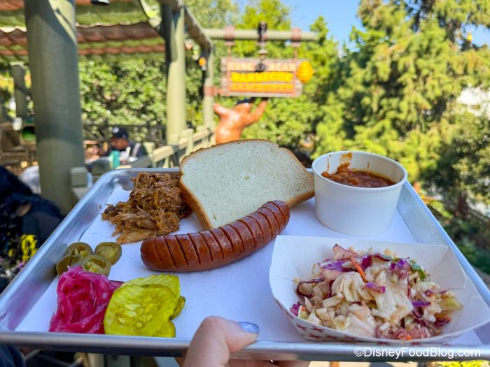 We have to say that we were surprised by the barbecue we had here — it’s a nice homage to Southern barbecue (right down to the white bread) and we like the ability to add additional sauces to our meals, too. The Country Bear vibe is also a big hit for us and it’s nice to see the Country Bears represented in Disneyland again.