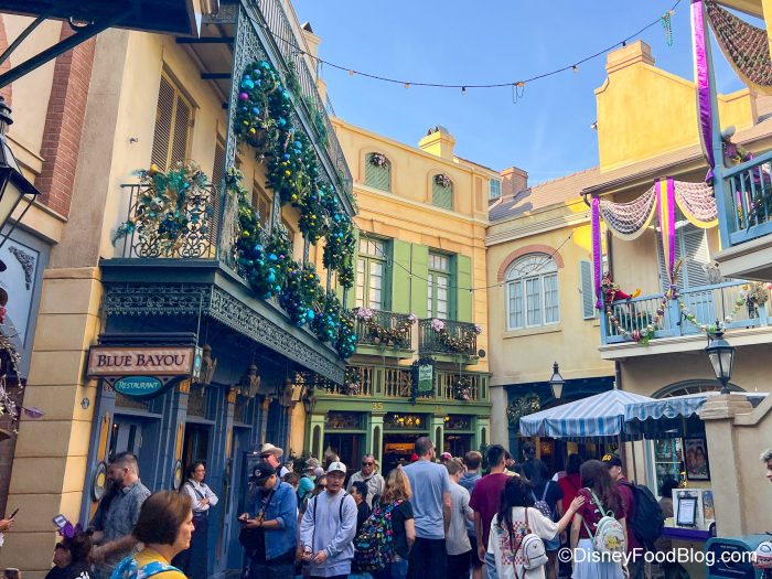 Now, we’ve already spotted the holiday snow on Sleeping Beauty Castle, but we’ve seen even more signs of Christmas creeping into Disneyland during what is STILL technically Halloween Time. We spotted holiday decorations up in New Orleans Square.