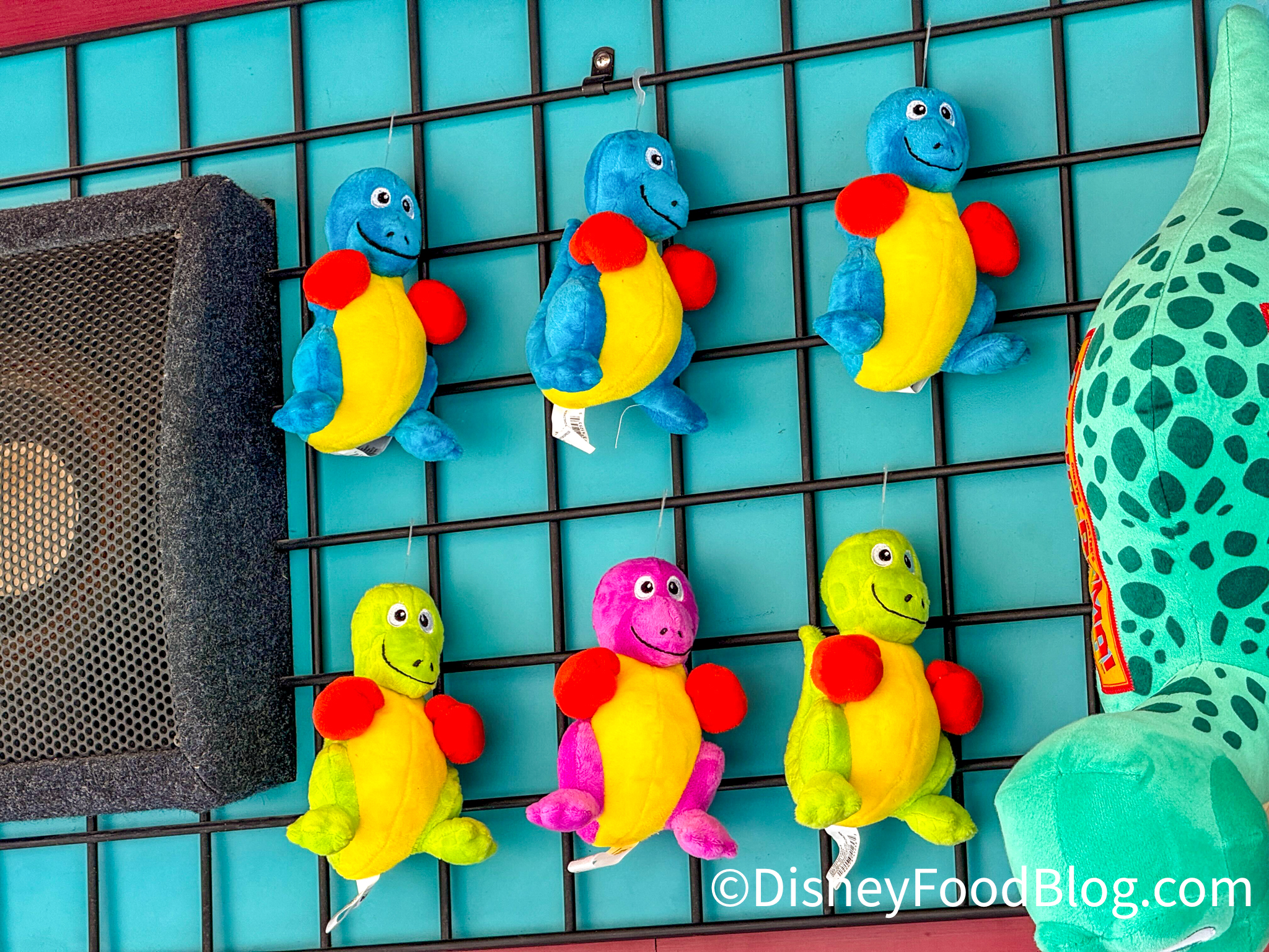 Recently, we visited the Fossil Fun Games in Animal Kingdom, and we noticed that NEW plushes are now available as small prizes. Previously, the small prize was a Mickey or Minnie Plush with a shirt that read “The Dino Institute.” However, it appears that those, along with some of the smaller dinosaur plushes, are no longer available.