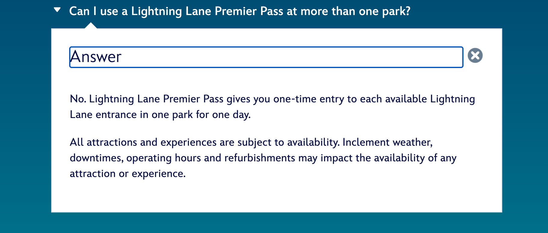 This pass is for the select few that only plan to visit WDW once in a lifetime, are only interested in shows and attractions, have an unlimited budget and have limited time to spend in the parks. WDW needs to limit the sale of these passes and keep the cost high to maintain reasonable waits for the standby and regular Lightning Lane users. For the right person, it does do a good job of threading the needle between the Lightning Lane Multiple Pass and Single Pass and the VIP tours. My family would never consider purchasing this pass. We are frugal (once the money is gone, you can’t get it back), and this is a totally unnecessary expense for us to enjoy the parks.