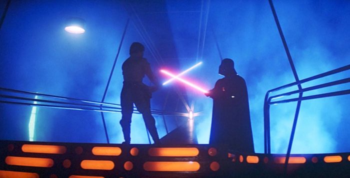 Luke, however, abandons his training to go save his friends because Han, Leia, and Chewbacca just can’t stay out of trouble. Also, Han gets himself frozen in carbonite and then is kinda’ a jerk to Leia when she admits that she loves him (um… “I know?” REALLY, DUDE?). Honestly, this is my least fave movie of the original trilogy, but I still love it because Billy Dee Williams as Lando Calrissian is 🔥🔥🔥 even if he does betray Han. Also, Luke learns that Darth Vader is his daddy and that’s a moment that lives on in many Star Wars fans’ memories.