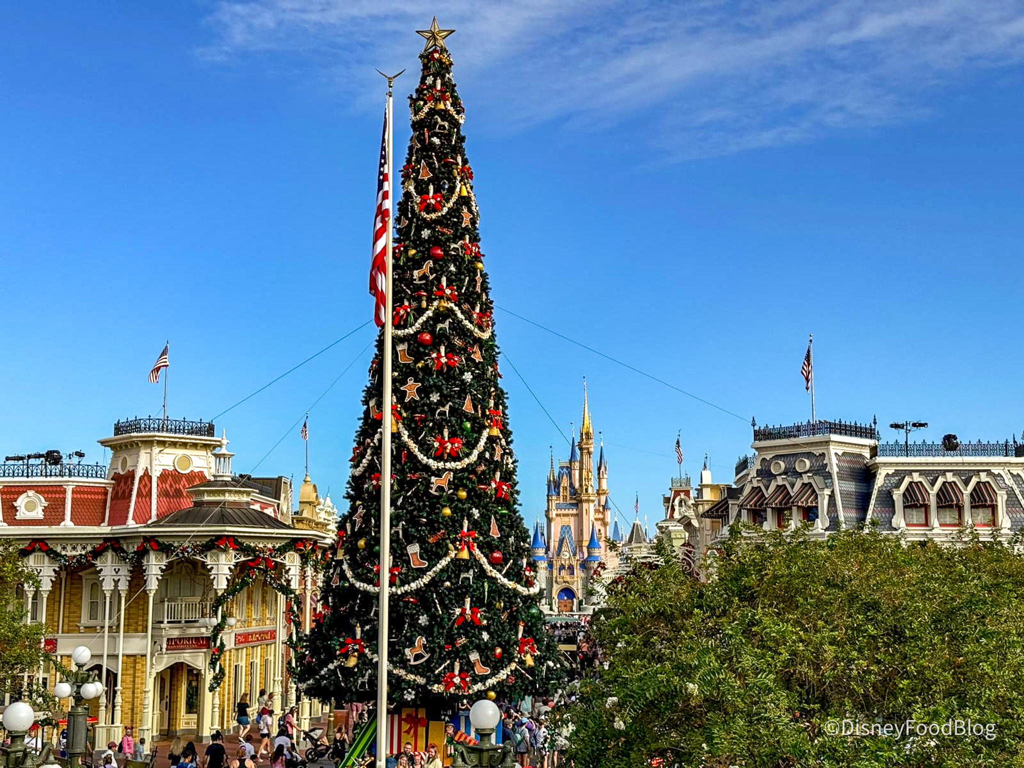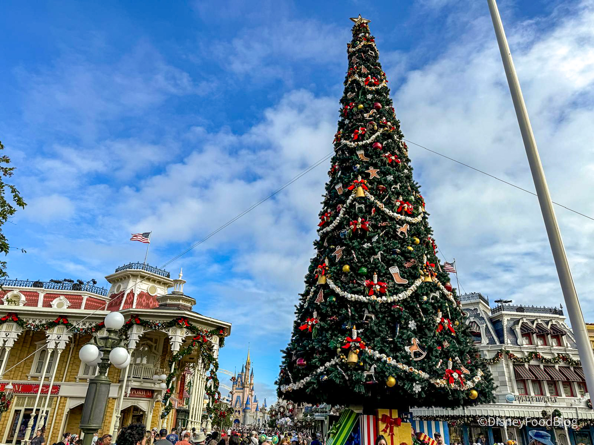 November 1st marked the beginning of the holiday season at Magic Kingdom! Overnight, the park went from the spookiest season to the jolliest. Wreaths, poinsettias, and Mickey and Minnie holiday topiaries showed up at the train station and Main Street, U.S.A. But the biggest and most magical decoration was yet to make its appearance — the Christmas tree!