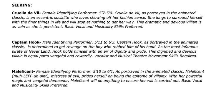 Online submissions are due by November 15th and must include a monologue and a cut of music. These three villains will likely be the stars of the new show, and naturally, we can expect some musical numbers!