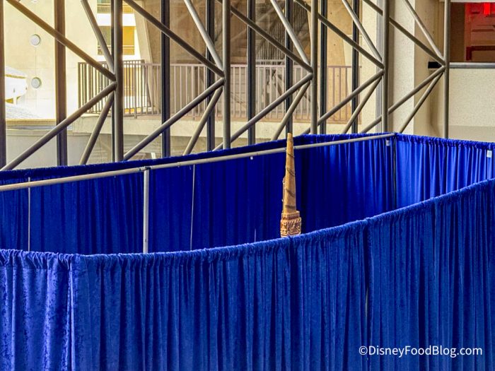 For now, the castle is still hiding behind a curtain — those Dream Lights take a while to install, after all! And at 17+ feet tall, this is no baby castle.