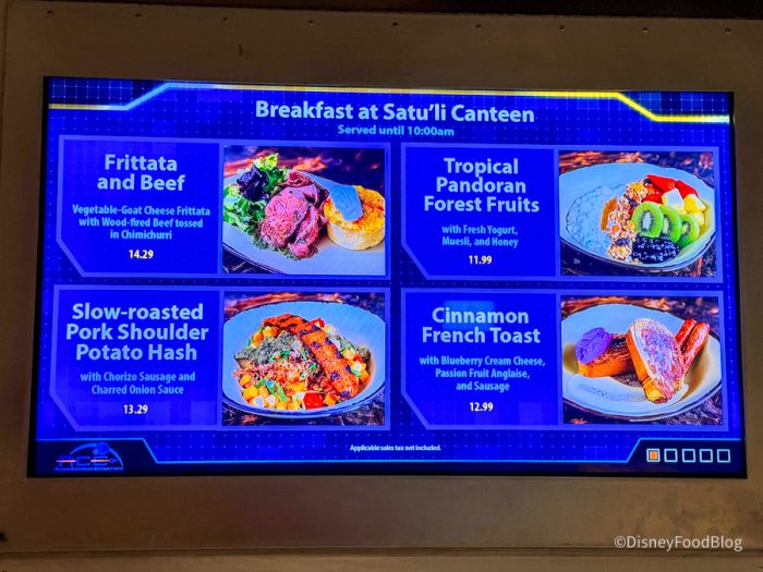 When Satu’li Canteen first opened in 2017, breakfast was served here (and we LOVED it!) — but it has been missing for years now. The current breakfast menu is made up of items we’ve tried before — so we’re excited to check them out this time around!