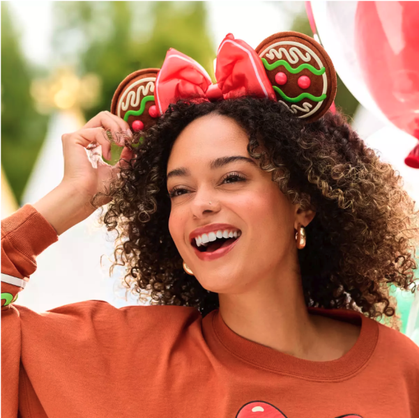 The Minnie Mouse gingerbread ears feature a big red bow, frosting, and candy details. It looks like someone baked some gingerbread and stuck them right onto a headband! They might look good enough to take a bite, but remember that these are NOT edible!