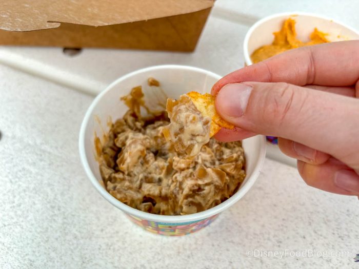 For us, they were a bit of a mixed bag. The French Onion Dip is creamy, cold, and heavy on the onion flavor, they basically took the essence of French onion soup and transformed it into a dip. While the flavor is good, it might not be for everyone, especially if you’re not a huge onion fan.