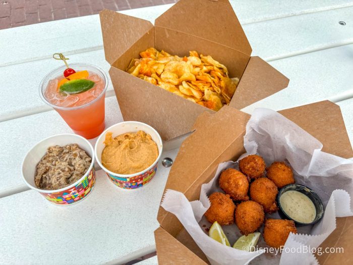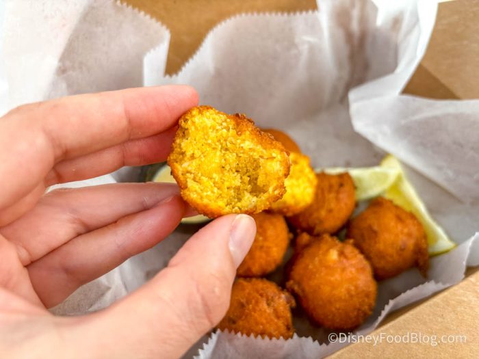 First up, we started with a serving of the Savory Hushpuppies, which are Olivia’s Famous Recipe, and they’re served with Key Lime Mustard for $12. If you’re a hush puppy fan, these might just be the highlight of your Disney dining experience here.