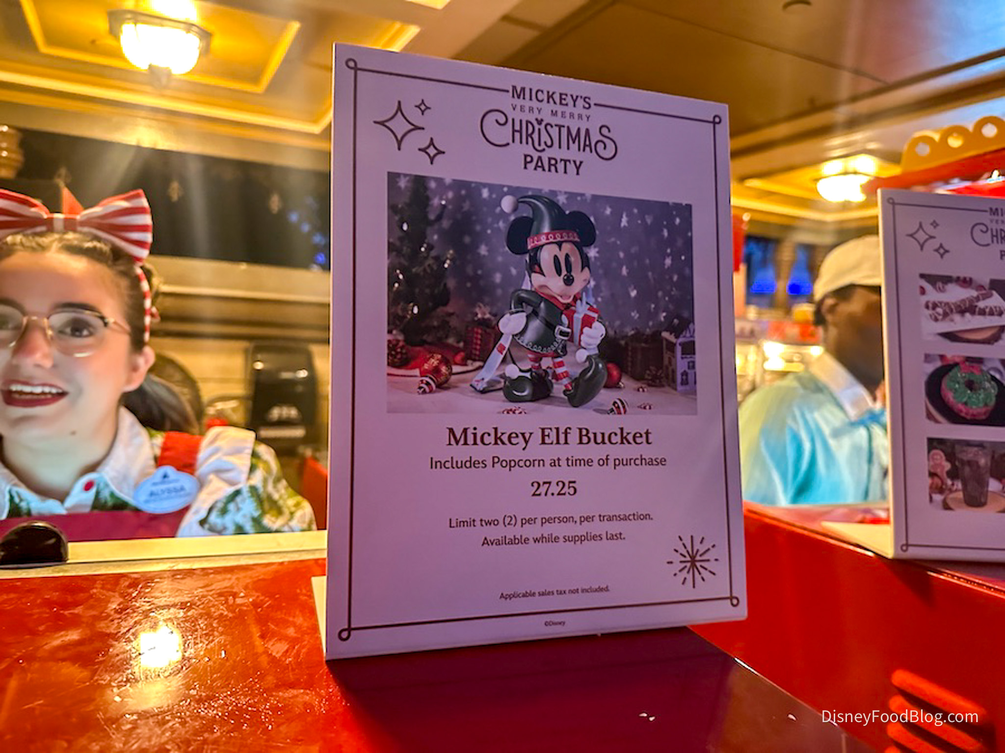 This year’s Mickey’s Very Merry Christmas Party features a collectible popcorn bucket featuring Mickey as an elf!