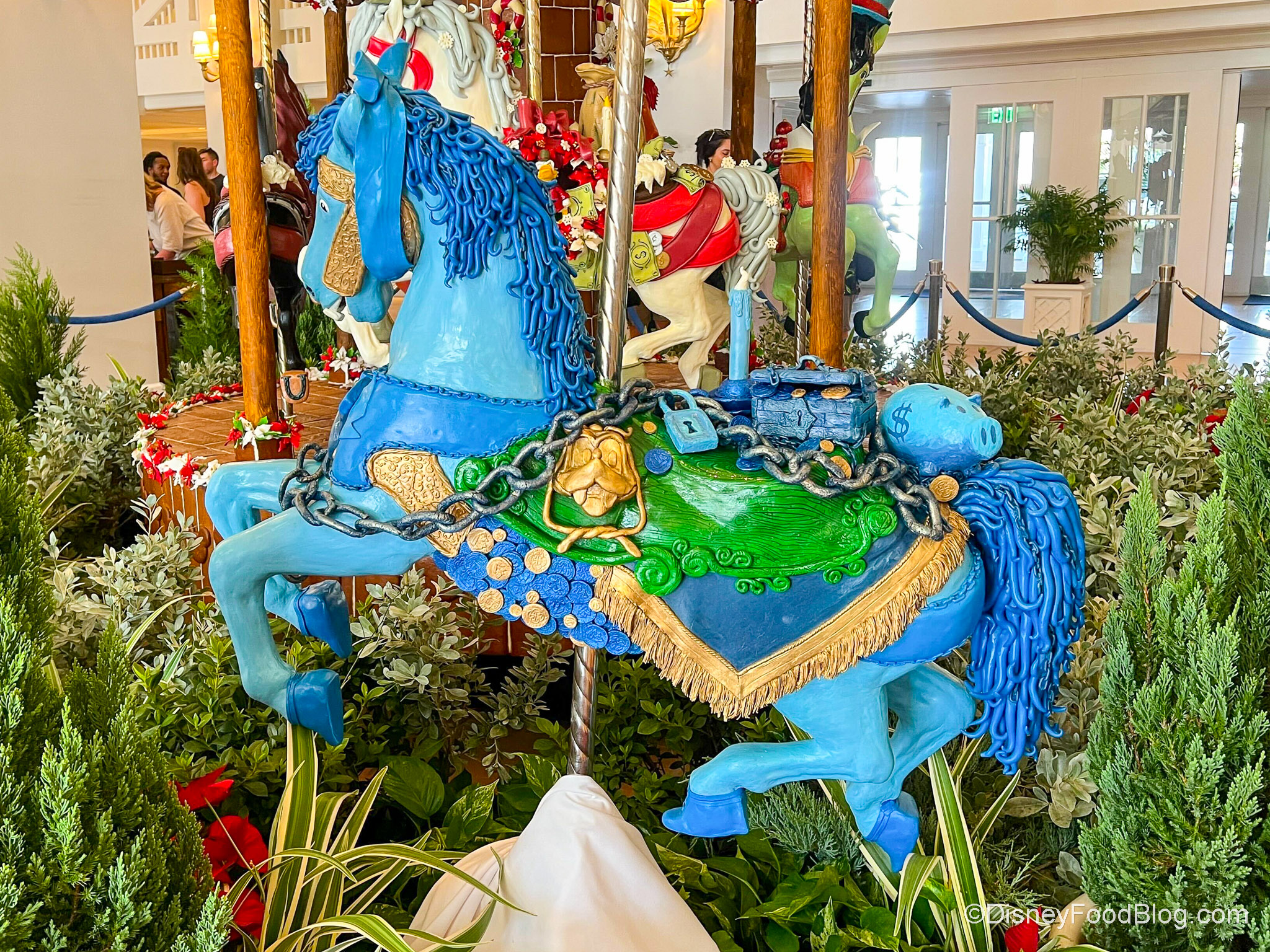 So the display at the Beach Club is a Carousel — but it has a theme. This year’s theme is Mickey’s Christmas Carol. Okay, this one is SO fun, y’all. Look at how huge it is. Now, don’t forget — this baby is EDIBLE (but it’s also art, so you can’t eat it).