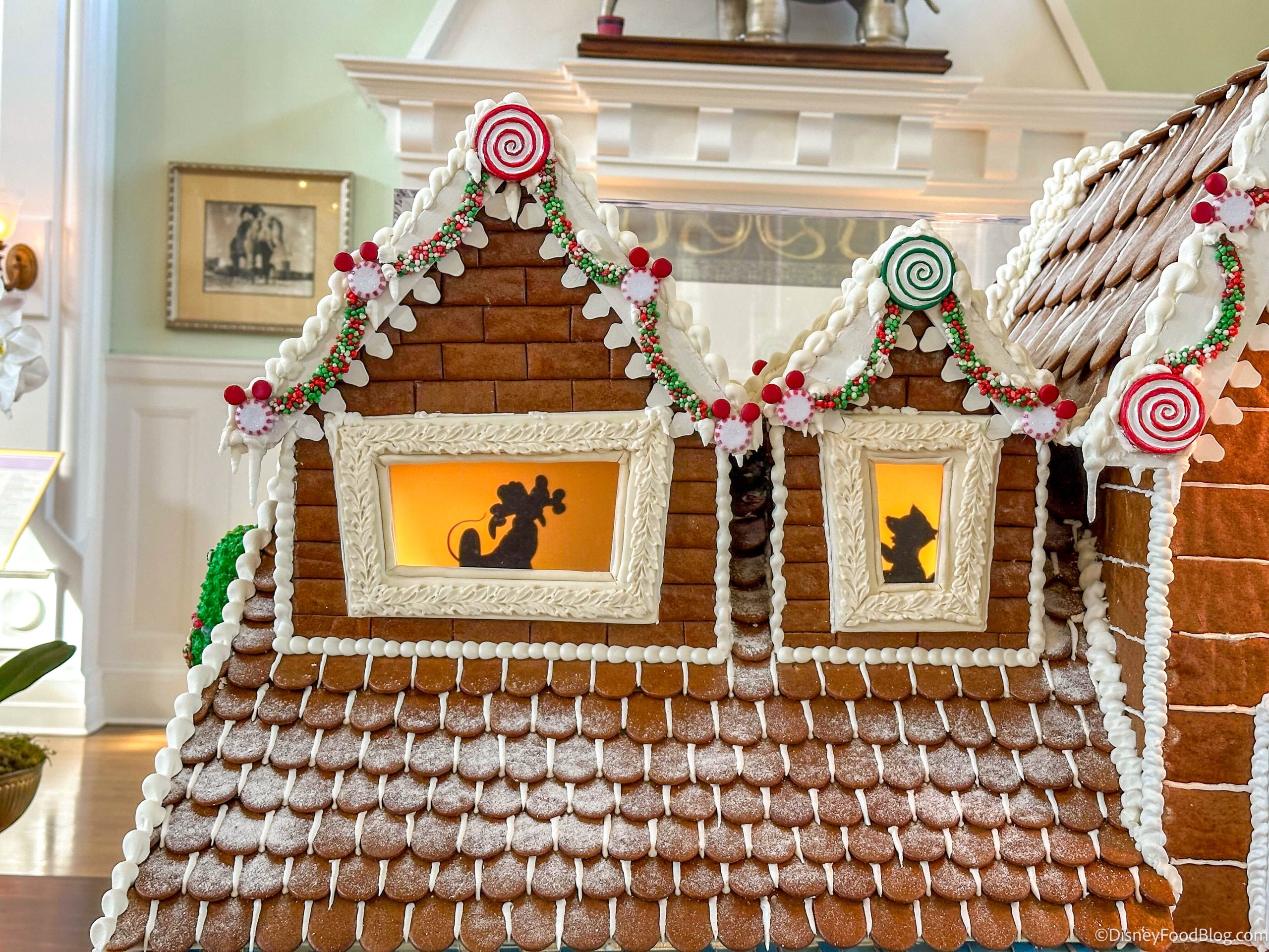 Each window has a Disney character shadow in it, and the roof is dusted with powdered sugar to look like snow.