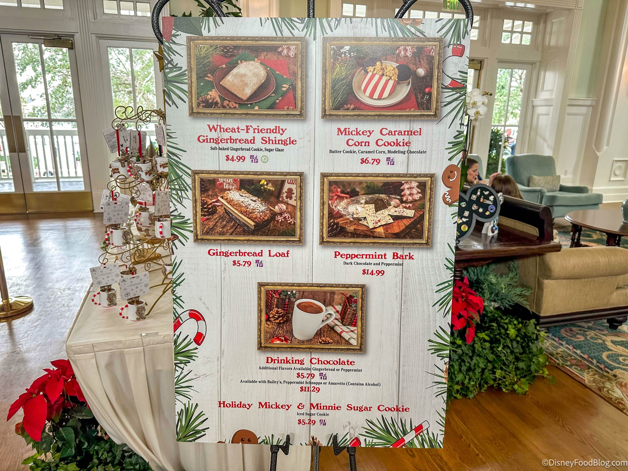 Their menu here is fairly limited, compared to some of the other gingerbread spots. You can get the classic gingerbread shingle or loaf, peppermint bark, the Mickey Caramel Corn Cookie, a sugar cookie, or hot cocoa.