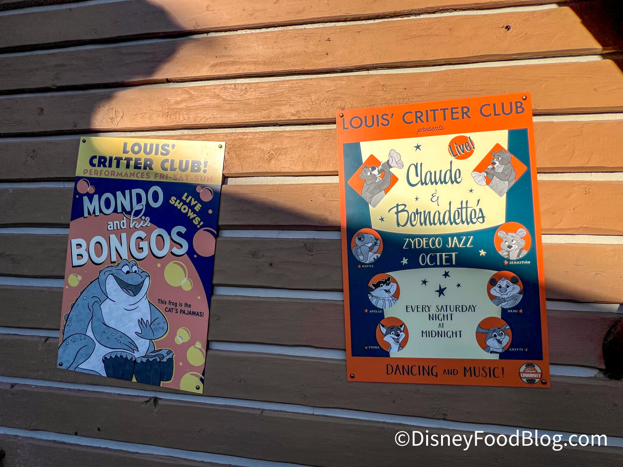 Outside of the Critter Club are posters for some of the acts that are performed in the club as well as at the attraction!