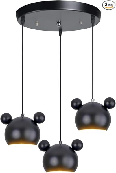 How adorable are these Mickey pendant light fixtures? You can elevate your space with our Bepuzz pendant light fixture featuring a black metal Mickey cartoon mouse design. We love the idea of adding this to a child’s room.
