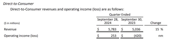 It was a great year for Disney at the box office as well. Pixar’s Inside Out 2 and Marvel’s Deadpool & Wolverine broke multiple box office records and helped drive $316 million in operating income at Content Sales/Licensing and Other in Q4.