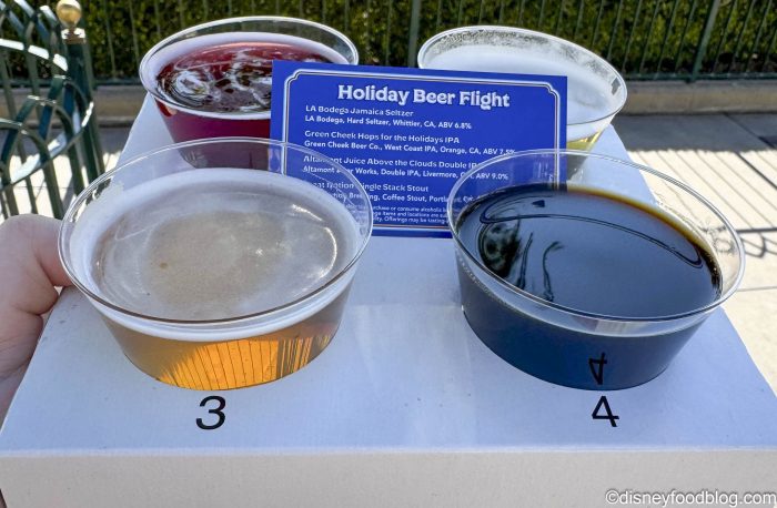 Okay, NOW AT LAST, let’s sip those BREWS! We’re doing this through the two available Flights: the Festive Beer Flight and the Holiday Beer Flight. The Festive Beer Flight costs $18.50.
