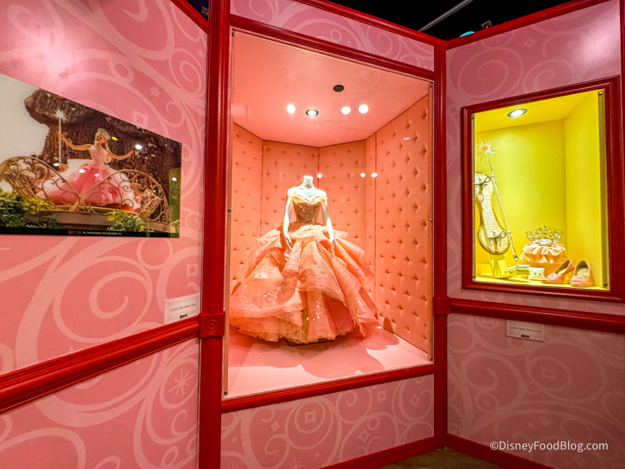 There are TONS of costumes and props on display throughout the experience, including this gown of Glinda’s…