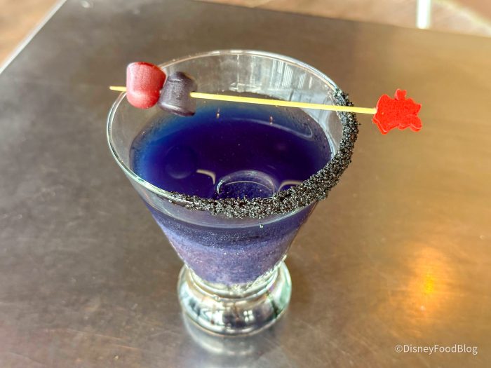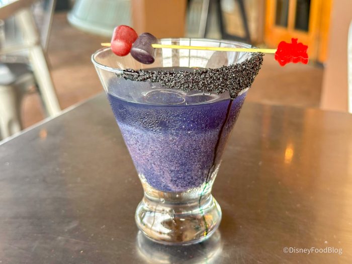 Now, on to our drink! We grabbed the Lump of Coal for $17.50. It is made with Absolut Vodka, Chambord Liqueur, Bols Blue Curaçao Liqueur, hibiscus syrup, and lime juice with glitter and a black sugar rim. It’s a fun, festive holiday drink!
