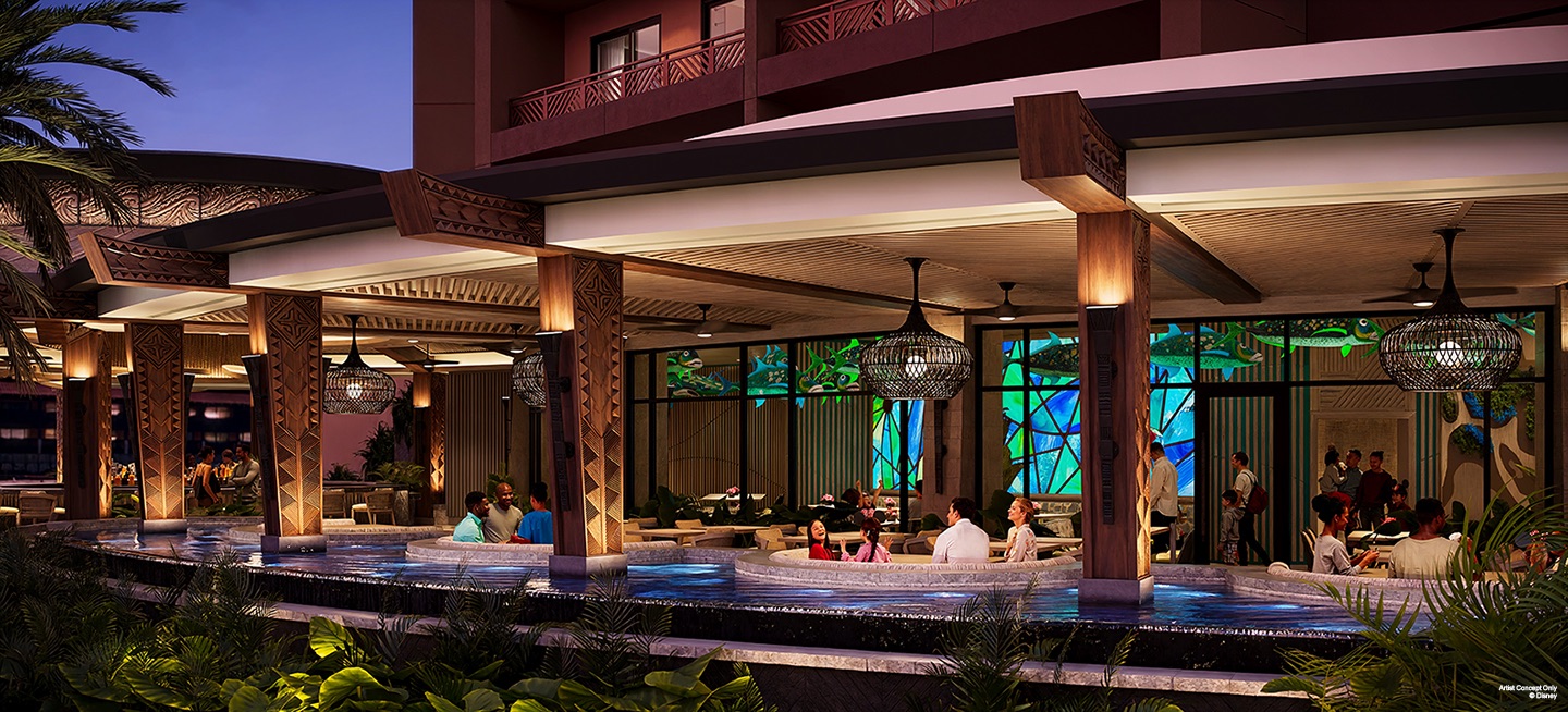 The Island Tower expansion will include the Wailulu Bar & Grill, a casual walk-up pool bar and grill. This spot will feature an all-day menu for lunch and dinner, plus specialty coffee and on-the-go morning pastries for breakfast. But since it’s not a Table Service restaurant like ‘Ohana, it is possible that ‘Ohana reservations might be in higher demand after the Island Tower opens.