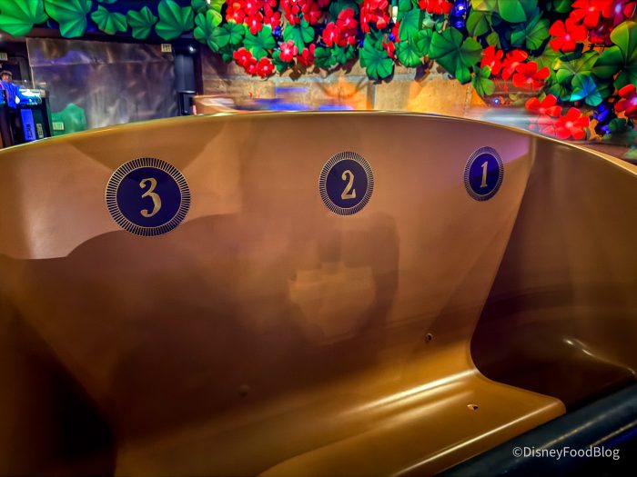 Some guests were surprised to see a random, single rider with them in the vehicle, but the other new change helped alleviate that concern! We also spotted new numbers added to the ride vehicles. You are now instructed to line up for a specifically numbered seat when you board the vehicle. This helped riders to clearly see that there are three people per row in the vehicles. So if they have a party of two or four, they can see there are empty spaces available for single riders.