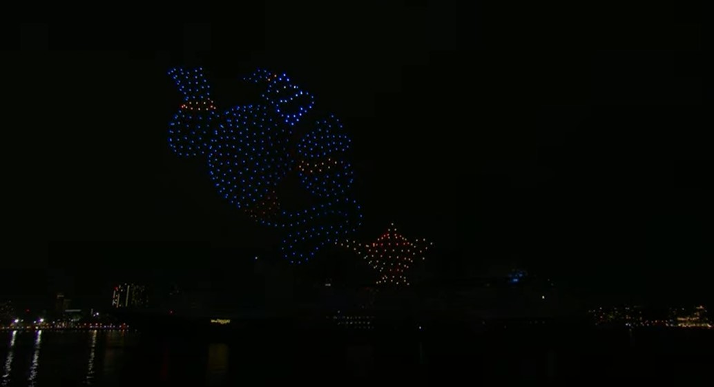 During the performance, popular Disney songs were interluded and accompanied by drone images in the sky that pertain to experiences you’ll find on the ship, such as this Genie one from Aladdin!