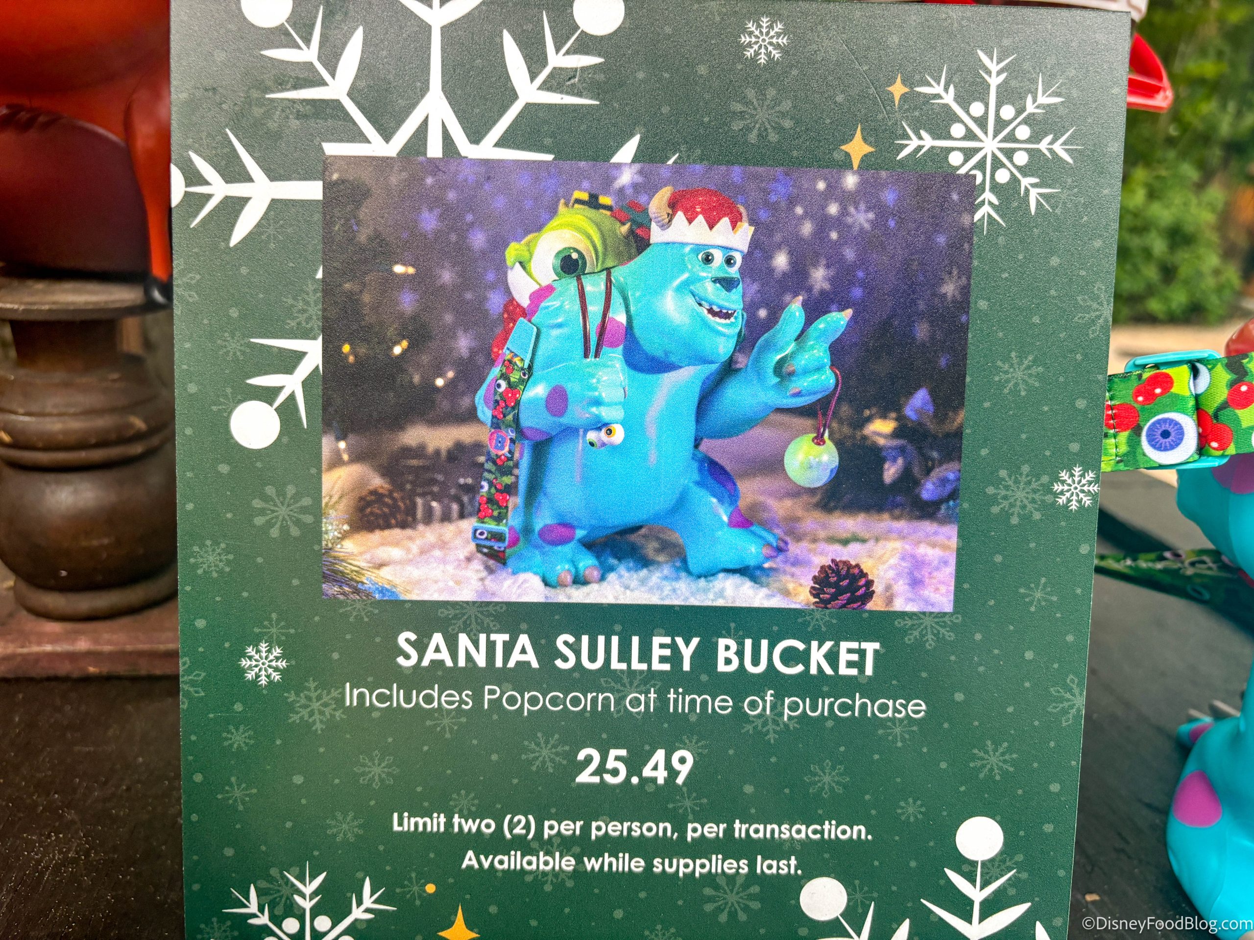 There’s a brand-new popcorn bucket in Disney World, and it’s a must-have for Monsters, Inc. fans! Say hello to the Santa Sulley Popcorn Bucket — we spotted it in Animal Kingdom during a recent visit.