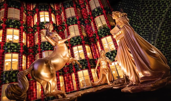 You journey to the British Ministry of Magic from Wizarding Paris, taking the Métro-Floo directly into the Ministry. There, you’ll find the “restored Fountain of Magical Brethren statue, the breathtaking enchanted weather ceiling, an endless array of Ministry offices from floor to ceiling, and many more intricate details.”