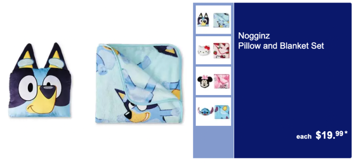 Our fave siblings are the stars of the show in this bedding set, which features a cozy fleece blanket and a soft Bluey pillow. Great for any love of Bluey to bring along while traveling.