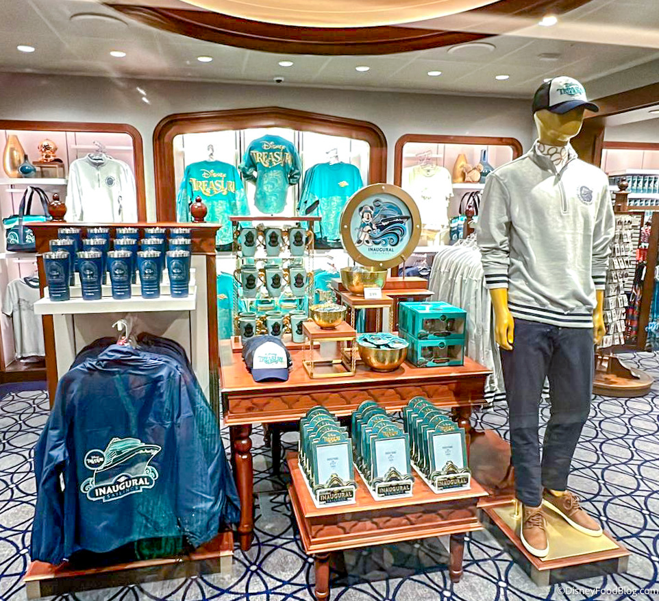 Our friends at Small World Vacations shared a few snaps with us as well. There’s the Treasure’s line of inaugural launch merchandise, which will be available during the ship’s initial voyages.