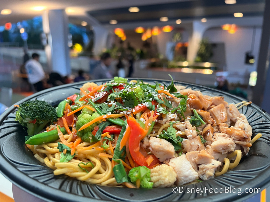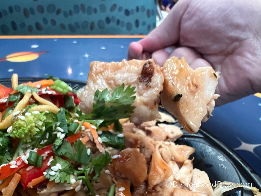 This meal didn’t stand out much one way or another, but maybe that’s a good thing. This is one of the least offensive dishes you’ll find at the Disneyland resort. Ours was super light and a great substitution if you want to take a break from deep-fried and greasy food. It’s very cut and dry — the veggies are basic veggies, the noodles were very basic, the chicken was surprisingly tender, and the sauce was light and subtle. While we wish there was more sauce, mixing it around seemed to help a bit. Otherwise, this is a perfectly fine dish.