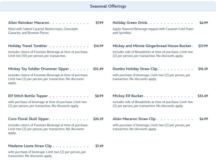 This restaurant tends to offer tons of seasonal offerings in food, drinks, and souvenirs, so be sure to check the menu often as it can look quite different each visit!