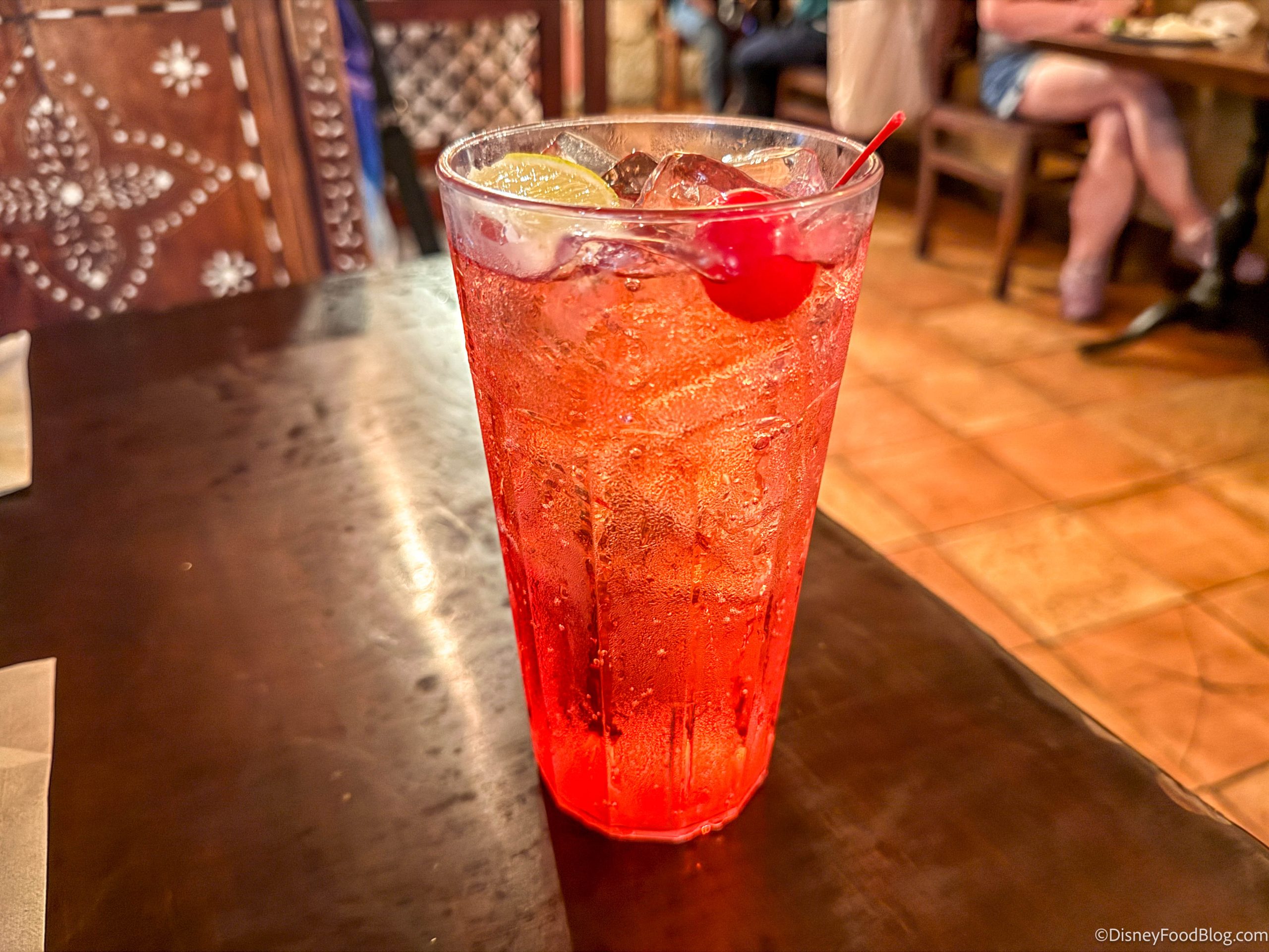 I started off my meal the best way — with a beverage! This is the Berry Cherry Limeade, which is cherry and lime juices mixed with Sprite. It’s topped with a lime wedge and a maraschino cherry.
