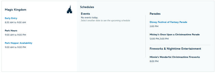 We spotted that the Disney World calendar lists daytime hours for the parade from December 21st through December 31st, 2024.