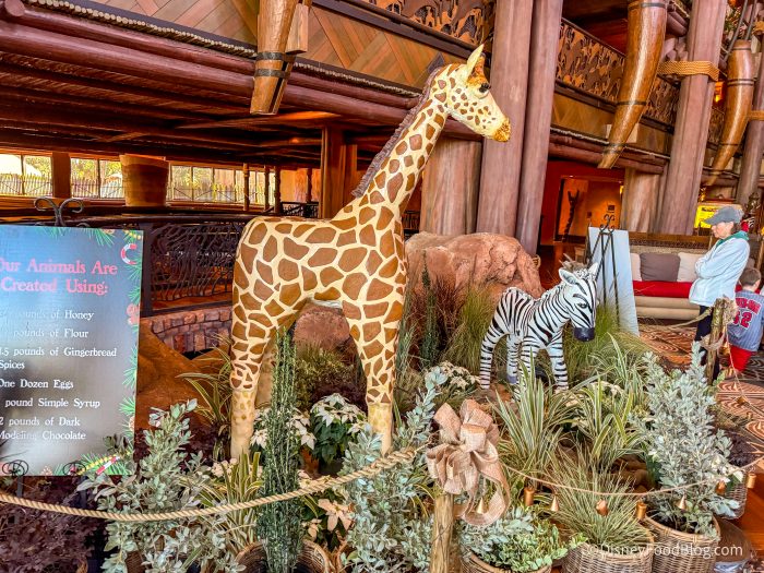The Christmas trees and gingerbread display are FINALLY up at Disney’s Animal Kingdom Lodge. This is another one of our favorite trees as it looks stunning in the lobby of Animal Kingdom Lodge!