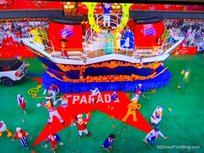 This year’s Disney Cruise Line Thanksgiving Day Parade float is called “Magic Meets the Seas” and its concept art depicts the bows of eight Disney Cruise Line ships. According to Disney, the 2024 float took inspiration from the 2023 version, with the Disney Treasure as the focal point of the float. As you can see, some of Disney’s most iconic characters are on board the float!