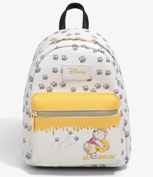 This classic Winnie the Pooh Loungefly is seriously sweet, with the honey detail on the front paired with the bees! It features our favorite bear on the front with his favorite saying, “Oh bother!”. Grab this one for 17% off!
