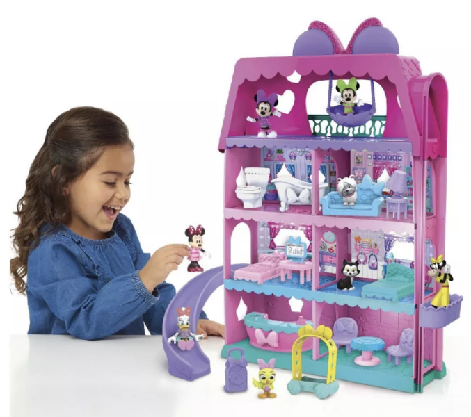 Got a younger kiddo who loves to play pretend? The Minnie Mouse Bow-Tel Hotel is a perfect way to spark that creativity! This “hotel” is four stories high, has a slide on the side, and comes with three figures to play with.