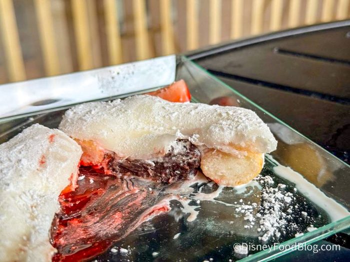 We really enjoyed this as well! It was light and fluffy, and the rice sheet on top wasn’t too powdery. The strawberry sauce had a great balance of sweetness to bring the treat together.