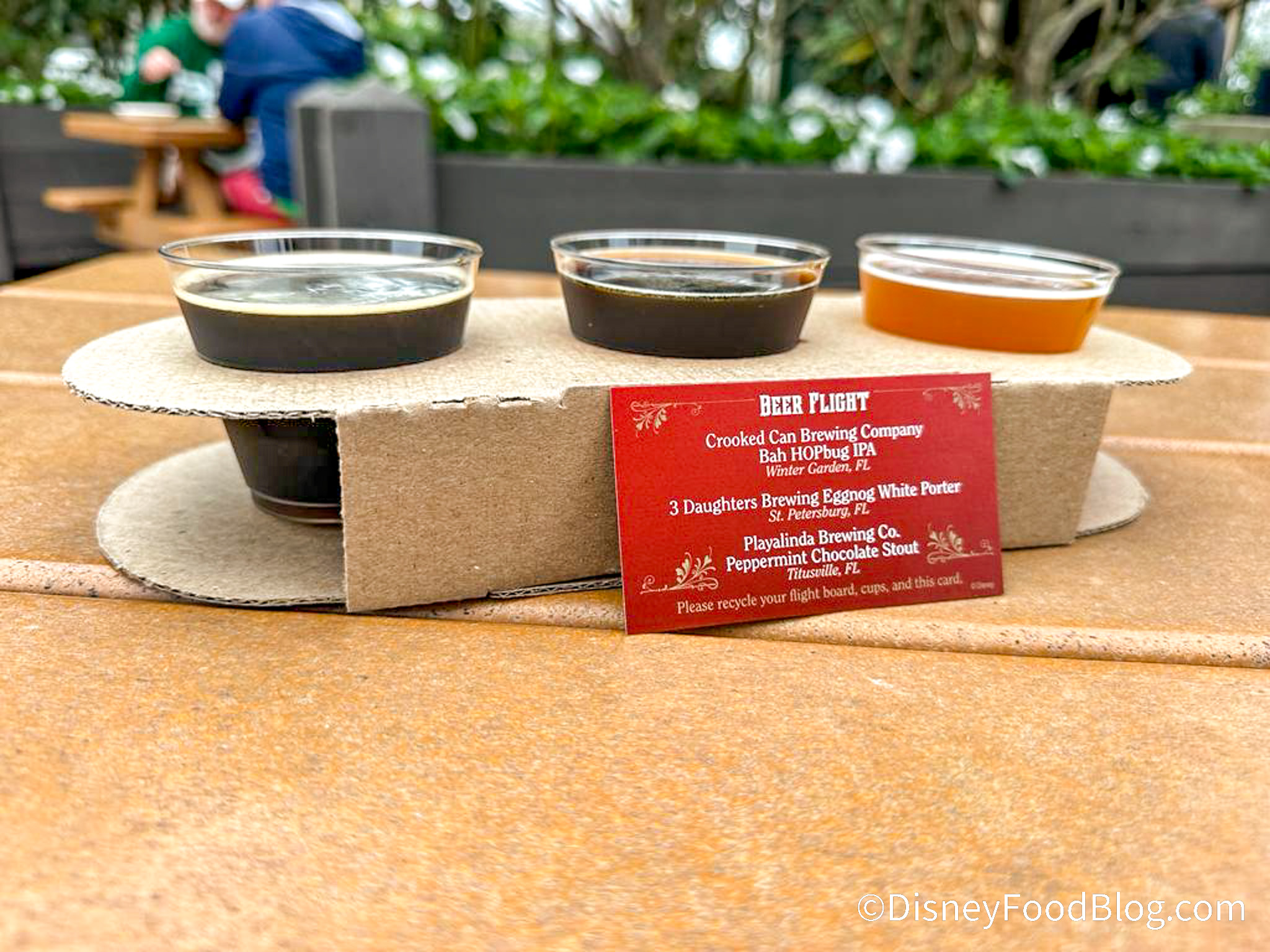 A Beer Flight is also up for grabs, featuring Bah HOPbug IPA by Crooked Can Brewing Company, Eggnog White Porter by 3 Daughters Brewing, and the Peppermint Chocolate Stout by Playalinda Brewing Co. You may also order any of the beers individually.