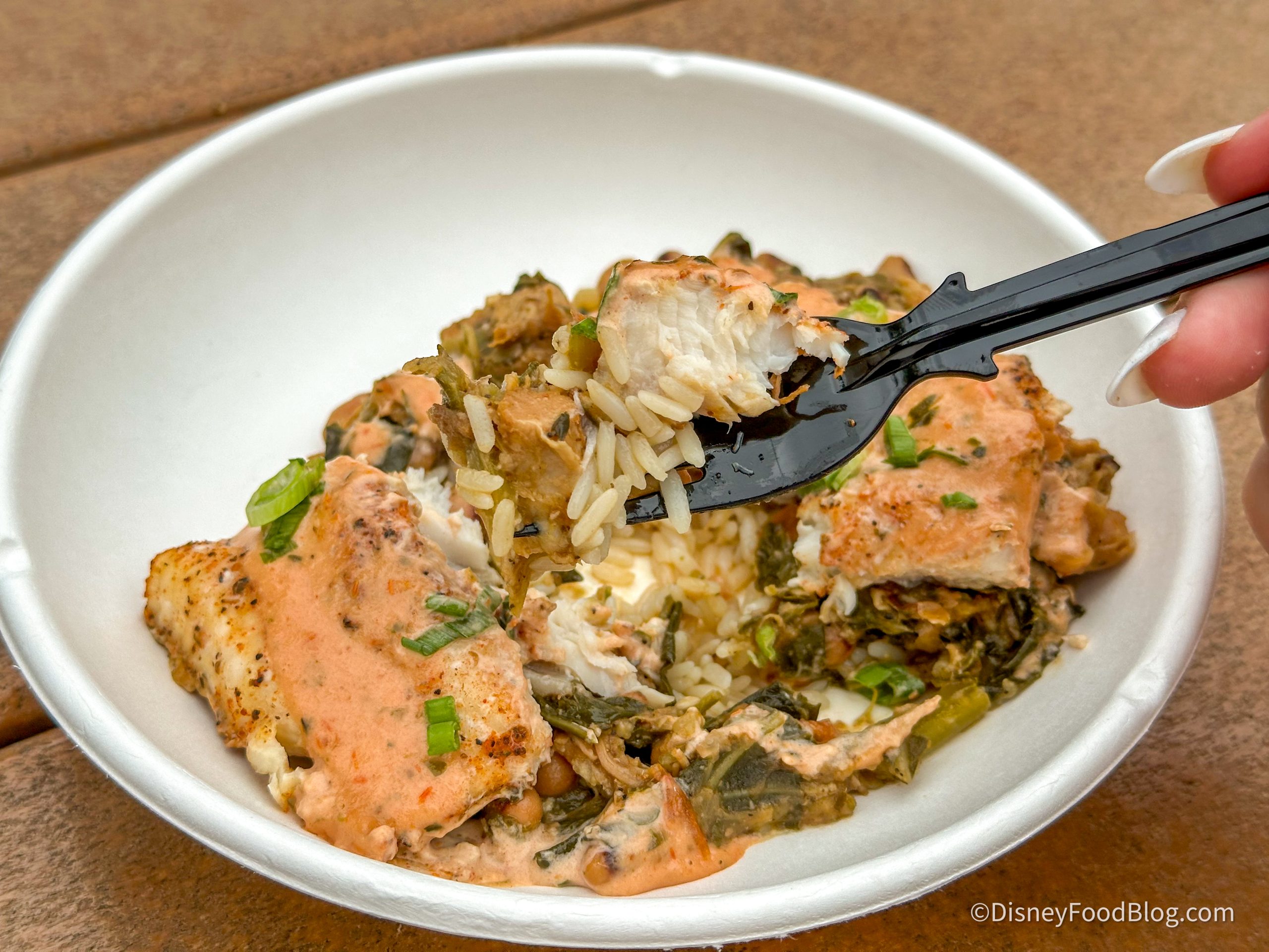 The Blackened Catfish with Hoppin’ John and Comeback Sauce has… well, it’s come back. 😉 It costs $6.75. And guess what? Last year, this one made our Best of the Fest list, too!