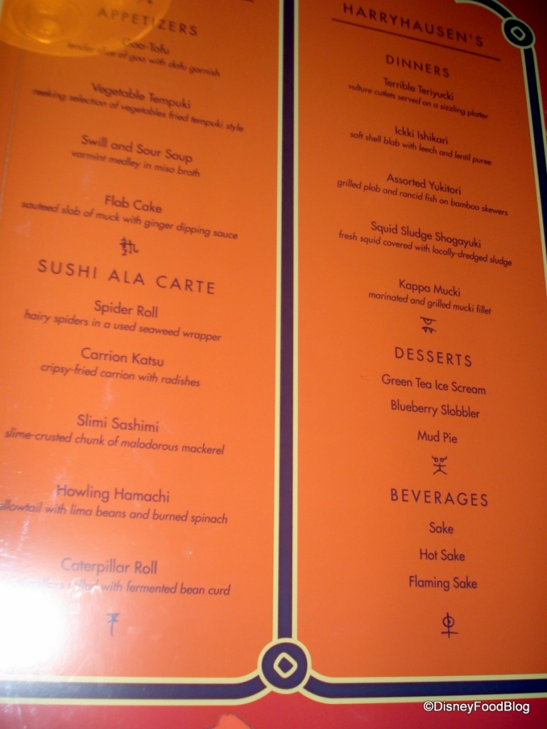 While we’re sad to see Mama Melrose go, a sushi restaurant would make a great addition to Hollywood Studios! In the movie, you can see the monsters chowing down on eyeballs and sushi. But when it comes to the menu for this spot, it could includes appetizers such as Goo-Tofu, Vegetable Tempuki, Swill and Sour Soup, and Flab Cake.