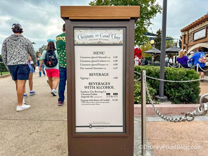 I hope you are because Chestnuts and Good Cheer is one of the Holiday Kitchens (also known as Food Booths) at the 2024 EPCOT Festival of the Holidays. As we take in all that the Festival has to offer (including things like the Cookie Stroll, the Candlelight Processional, and all of the Holiday Storytellers around the park), let’s make a stop for some traditional holiday goodies so we can bring you our full review of Chestnuts and Good Cheer!