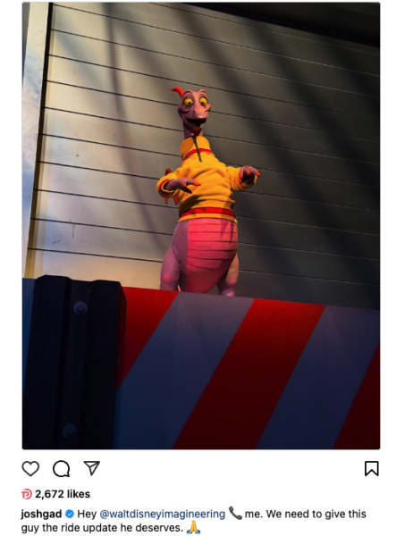 …Gad also stopped by Disney’s Hollywood Studios for “One last ride” on Muppet*Vision 3D. He added in his Instagram caption, “Paying my respects to the GOAT. #muppetvision3d thank you for always making me smile. We shall miss you dearly.” WE’RE CRYING.