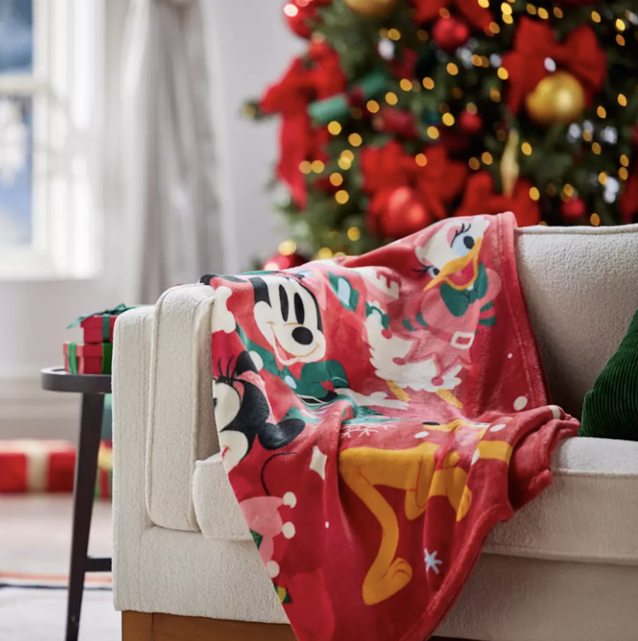 This Mickey and Minnie Holiday throw is also available for $25 WITH each purchase.