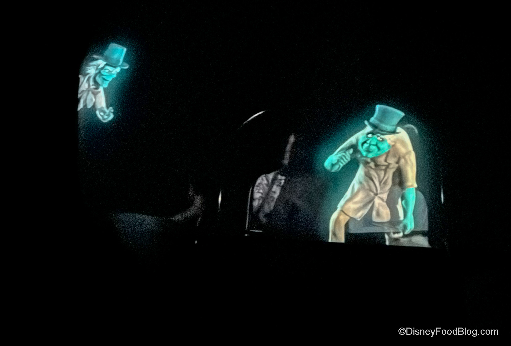 Well, it turns out that this is the ride’s B-mode, AKA the effect that’s used when there’s a problem with the original. Apparently, the regular interactive hitchhiking ghosts weren’t working correctly, so these were stepping up to fill their place. If you happen to see this effect used in the future, don’t worry — it’s likely just temporary!