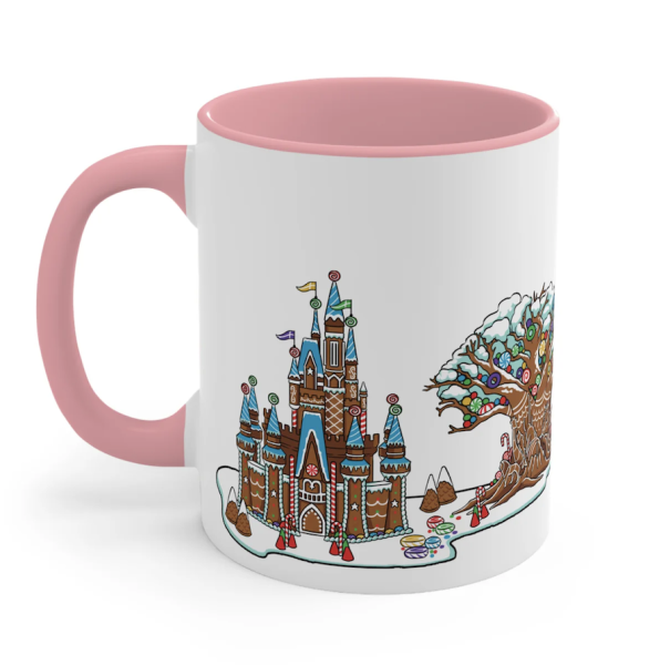 The Gingerbread Park Icons – Accent Mug is the perfect way to enjoy a deliciously warm drink during the holiday season or any season! These mugs are available in pink, red, or black accent colors and feature gingerbread-style images of Cinderella Castle, Spaceship Earth, the Tree of Life, and the Tower of Terror! These mugs also come in one of two sizes: 11 ounces or 15 ounces.