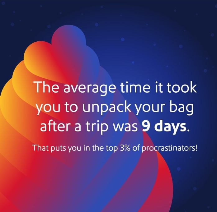 Okay, so you know the Spotify Wrapped lists that always come out this time of year? It basically tells you how much time youāve listened to Spotify, which artists youāve listened to the most, and the top songs you listened to. Well, Southwest has created its own Wrapped, and yāall, we feel pretty called out. For example, the first part of it says that the average time it took for us to unpack a bag is nine days. Umā¦okay, accurate. In our defense, unpacking means the trip is really over, and that just makes us sad.