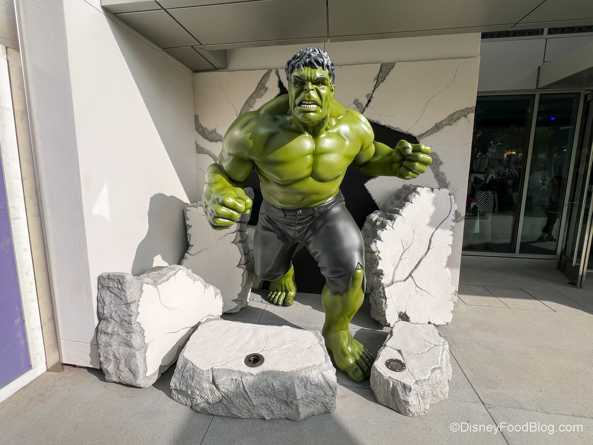 The coolest thing about this store, though? There’s a gigantic Hulk busting out of it! SO COOL!
