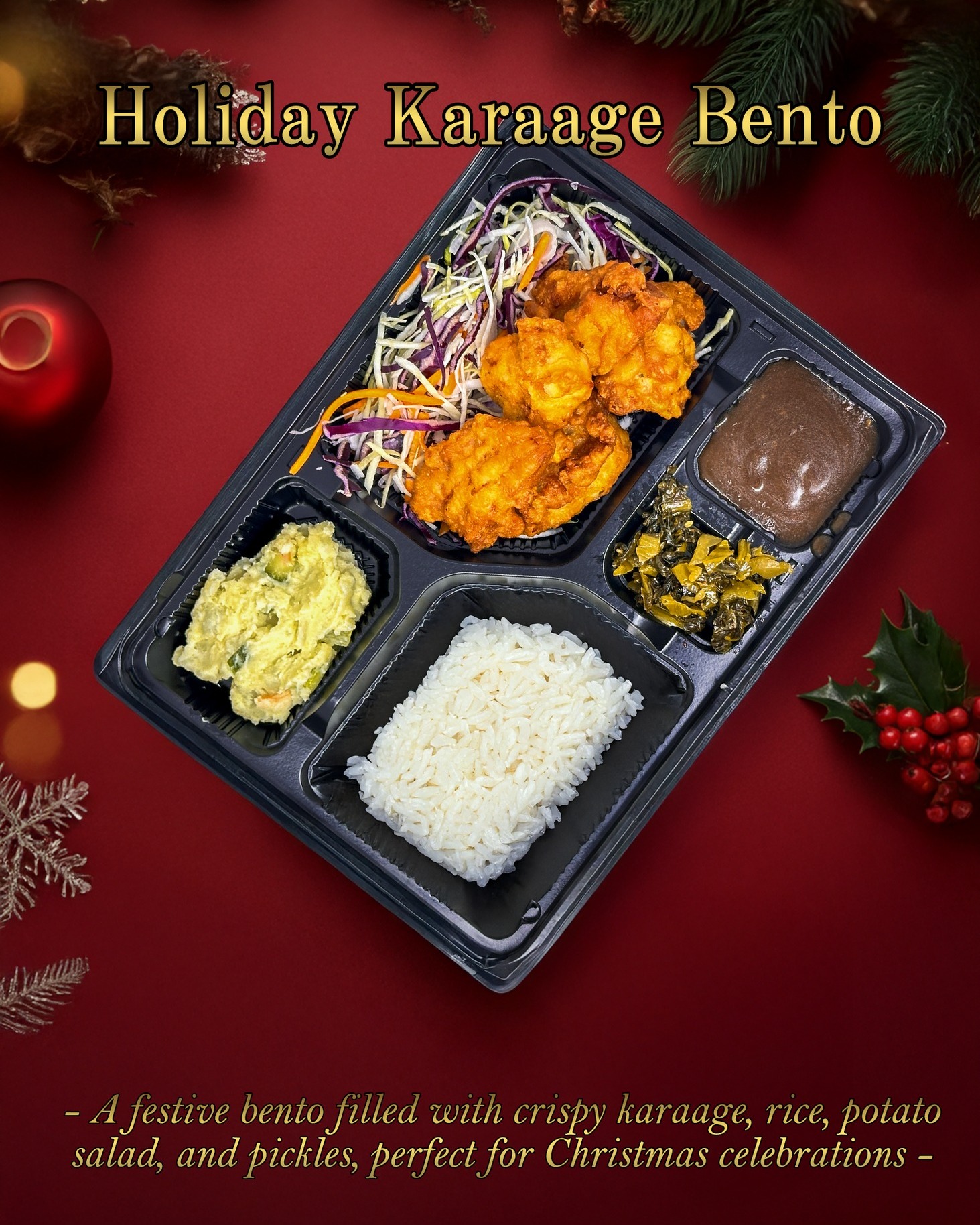 Katsura Grill has a Holiday Karaage Bento filled with crispy karaage, rice, potato salad, and pickles, making it the perfect Christmas meal.