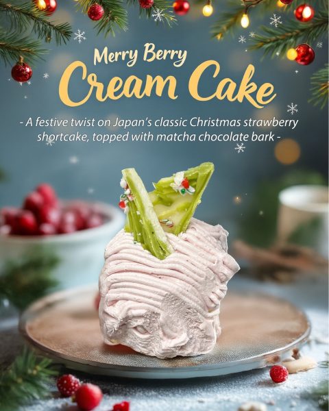 You can also grab the Merry Berry Cream Cake at Teppan Edo. This is a holiday twist on the traditional cream cake with a strawberry shortcake topped with matcha chocolate bark.